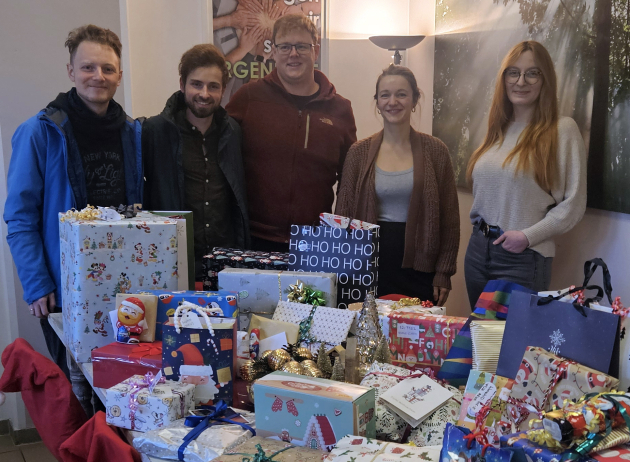 Die Geschenke gehen an die Kinder und Jugendlichen, die wir im Rahmen der Ambulanten Hilfen begleiten – und genau deshalb fühlte sich dieser Moment so besonders an. Ein Mitarbeitender aus unserem Ambulanten Team hat die beiden herzlich in Empfang genommen, und gemeinsam wurden die Pakete hereingetragen. Der Raum füllte sich mit Interesse, Wertschätzung und echter Freude darüber, was in den kommenden Tagen weitergegeben werden darf.