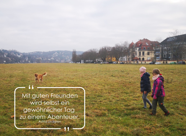 Der Tag begann mit einem liebevollen Austausch: Die Mädchen nannten einander und sich selbst Dinge, die sie aneinander schätzten. Anschließend machten sie einen ausgedehnten Spaziergang an der Elbe. Gemeinsam mit der Hündin Kira erkundeten sie die Natur, spielten, warfen Bälle und stärkten ihr gegenseitiges Vertrauen.